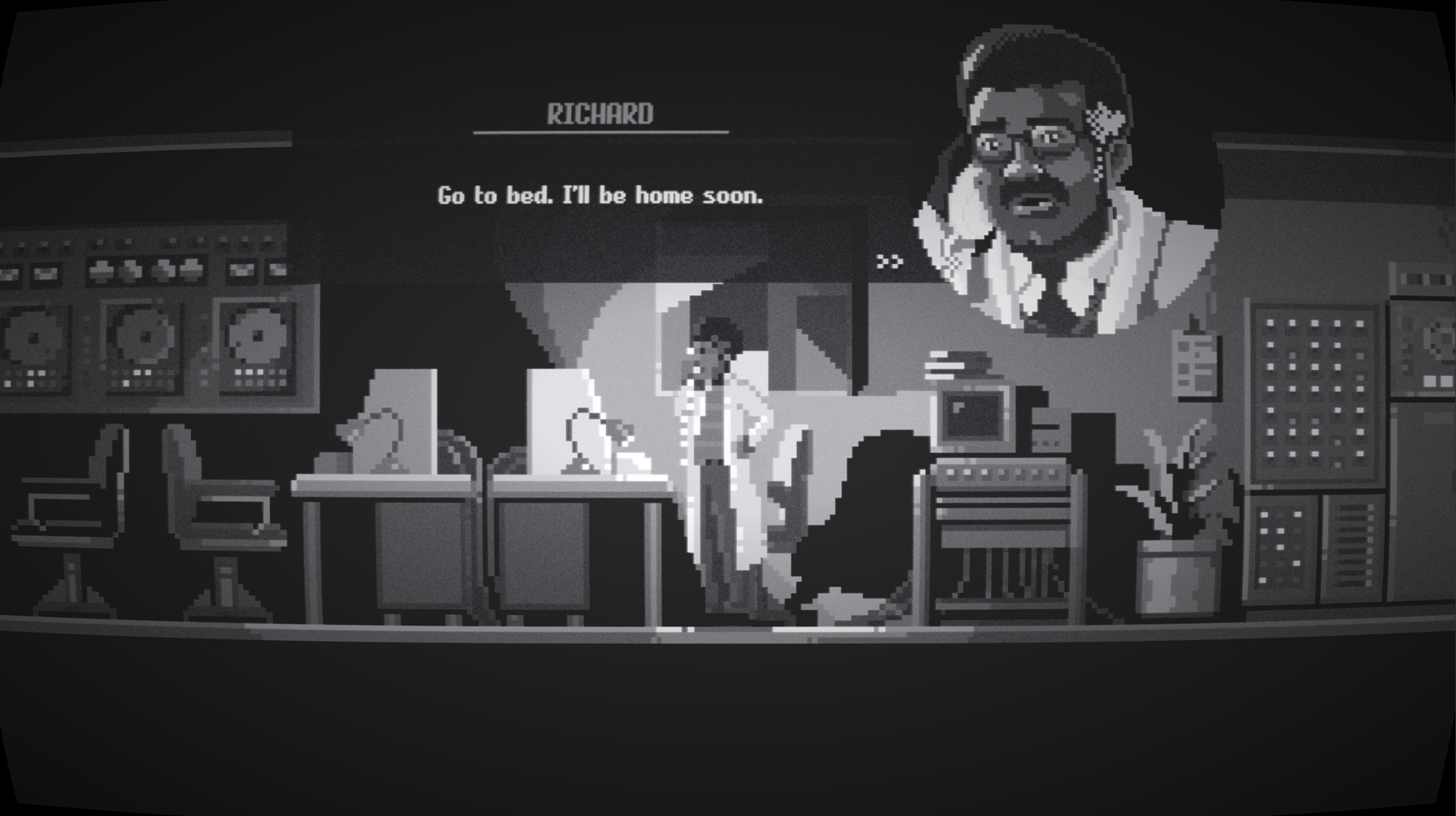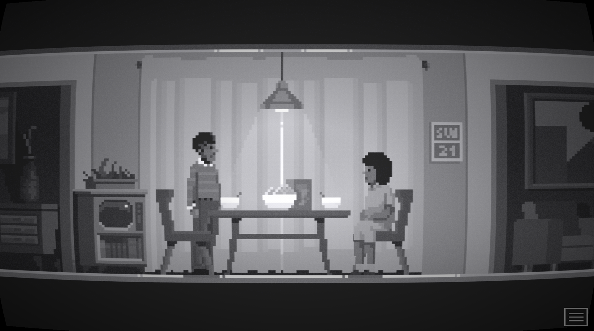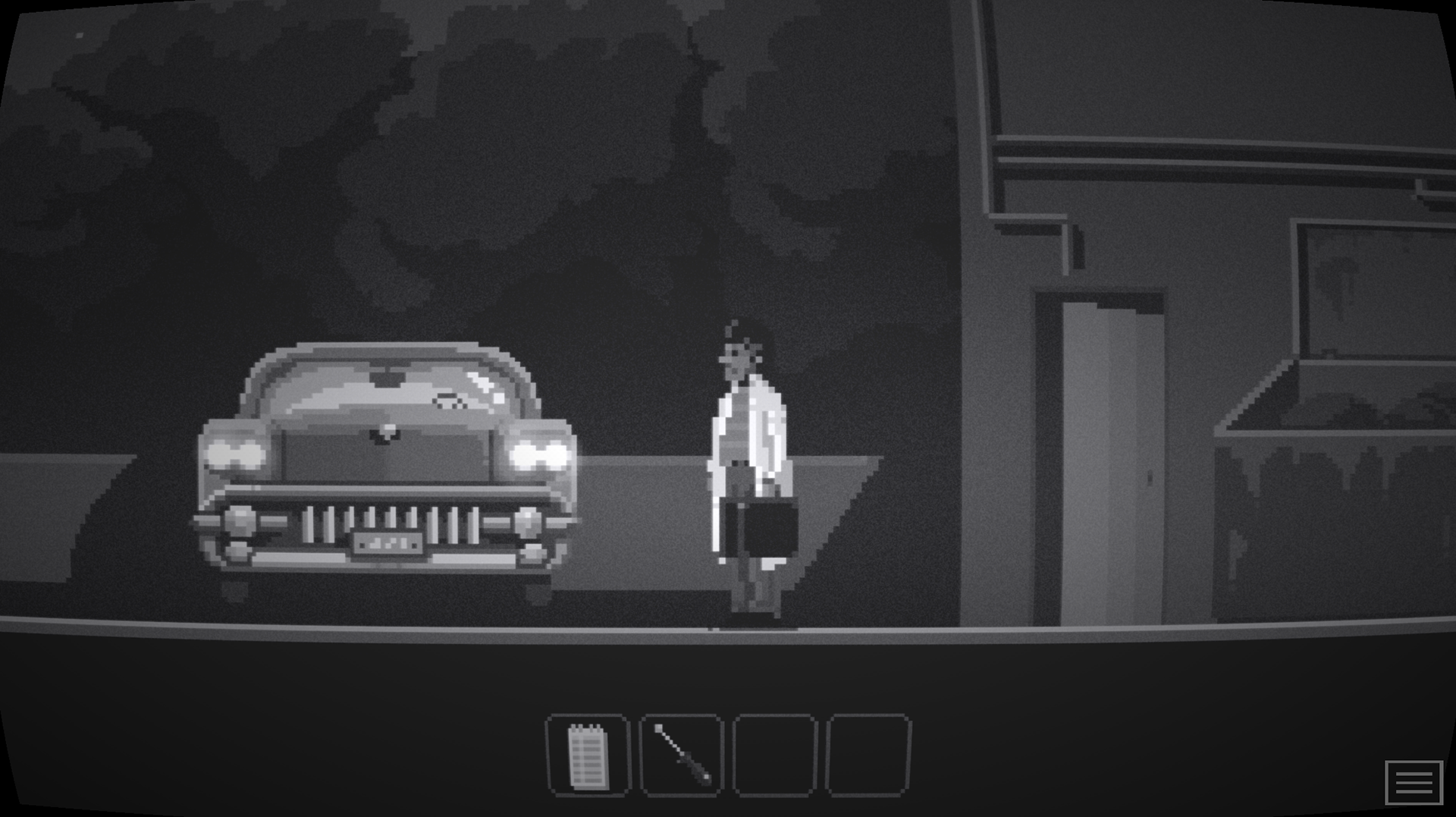 - Atmospheric black and white pixel art, inspired by horror and mistery shows from the 60's like The Twilight Zone and Outer Limits